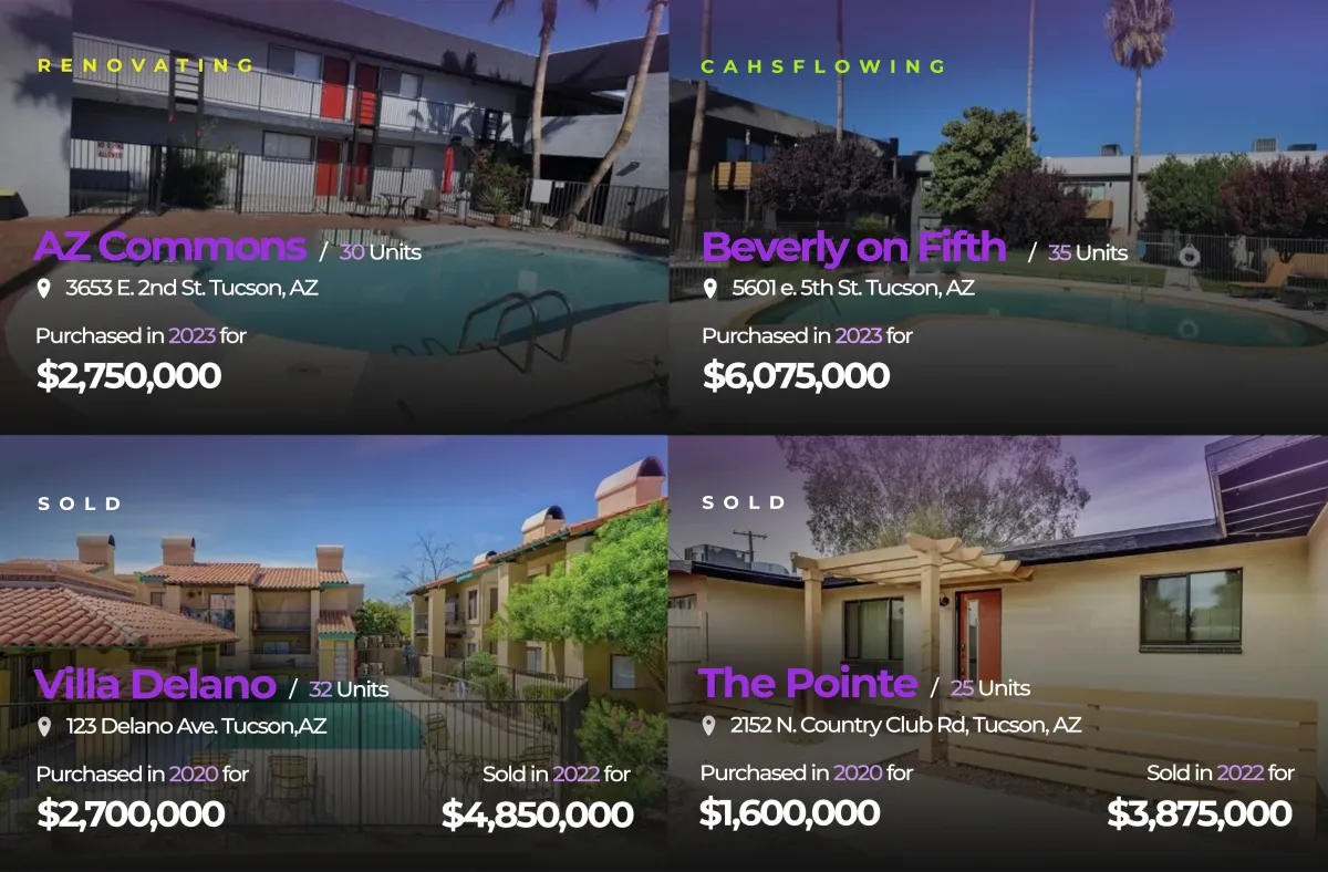 Track Record: 7 successful acquisitions in the Tucson market with consistent returns for investors.