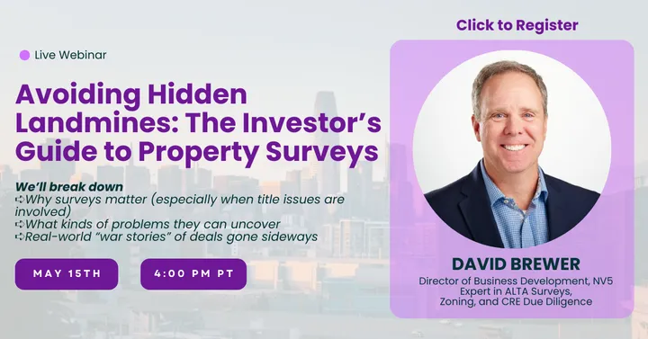 JOIN OUR LIVE SESSION TO UNDERSTAND HOW PROPERTY SURVEYS CAN MAKE OR BREAK YOUR DEAL WITH A SURVEY AND DUE DILIGENCE EXPERT.